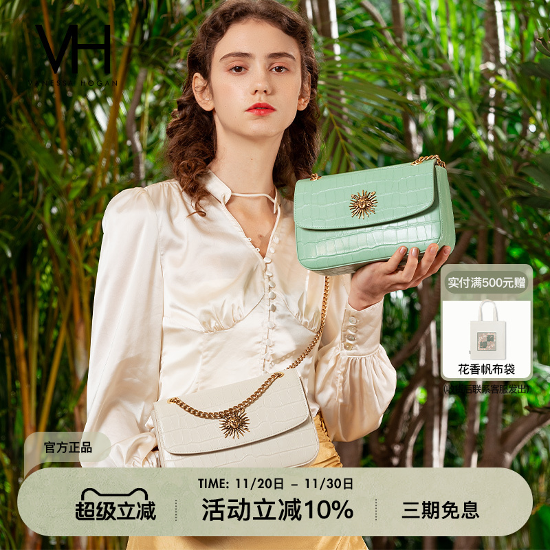 VH女包2023新款鳄鱼纹真皮包包太阳神链条包潮流单肩包个性斜挎包