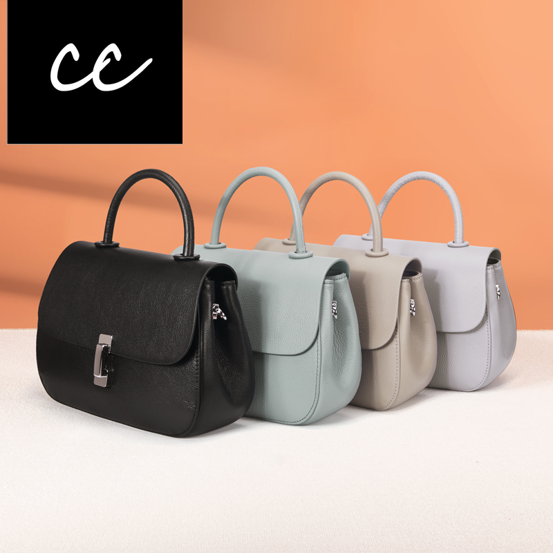 CC新款女式真皮包纯色简约小众通勤包时尚手提包单肩斜跨包2506