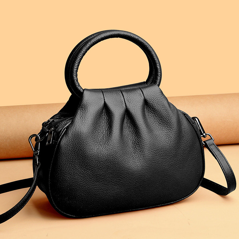转山复古头层植鞣牛皮包百搭单肩斜挎包保龄球包女士时尚方包