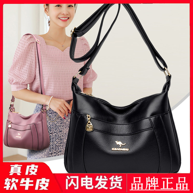 真皮包包2026新款百搭妈妈包多隔层大容量女包时尚软皮单肩斜挎包