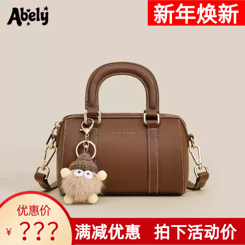 阿贝莉手提包秋冬新款真皮包包斜挎枕头包女包圆筒包单肩波士顿包
