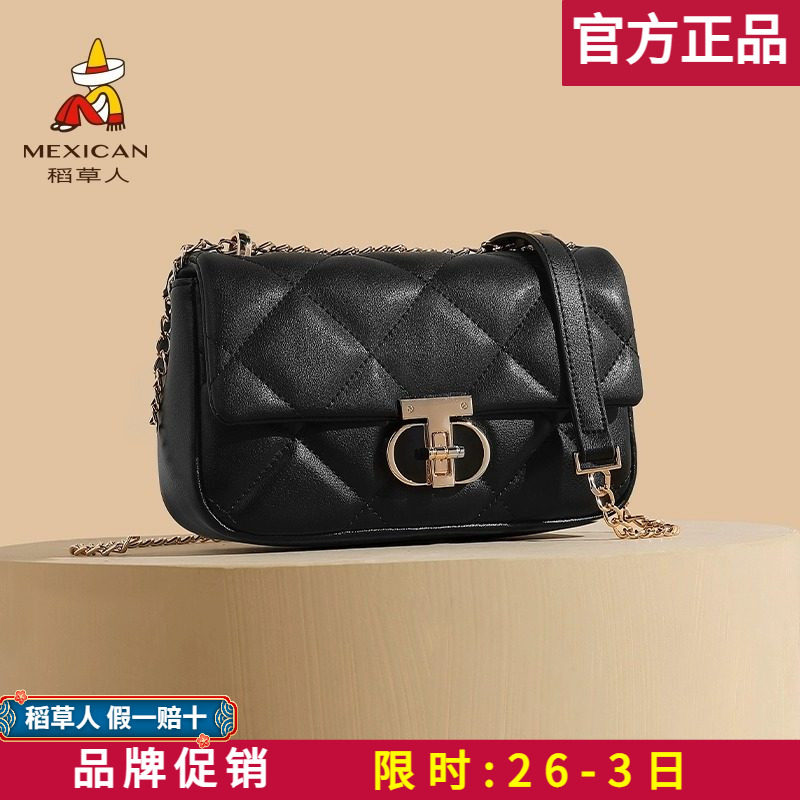 真皮包女斜挎小包包2025新款今年流行时尚单肩小方包百搭菱格包包