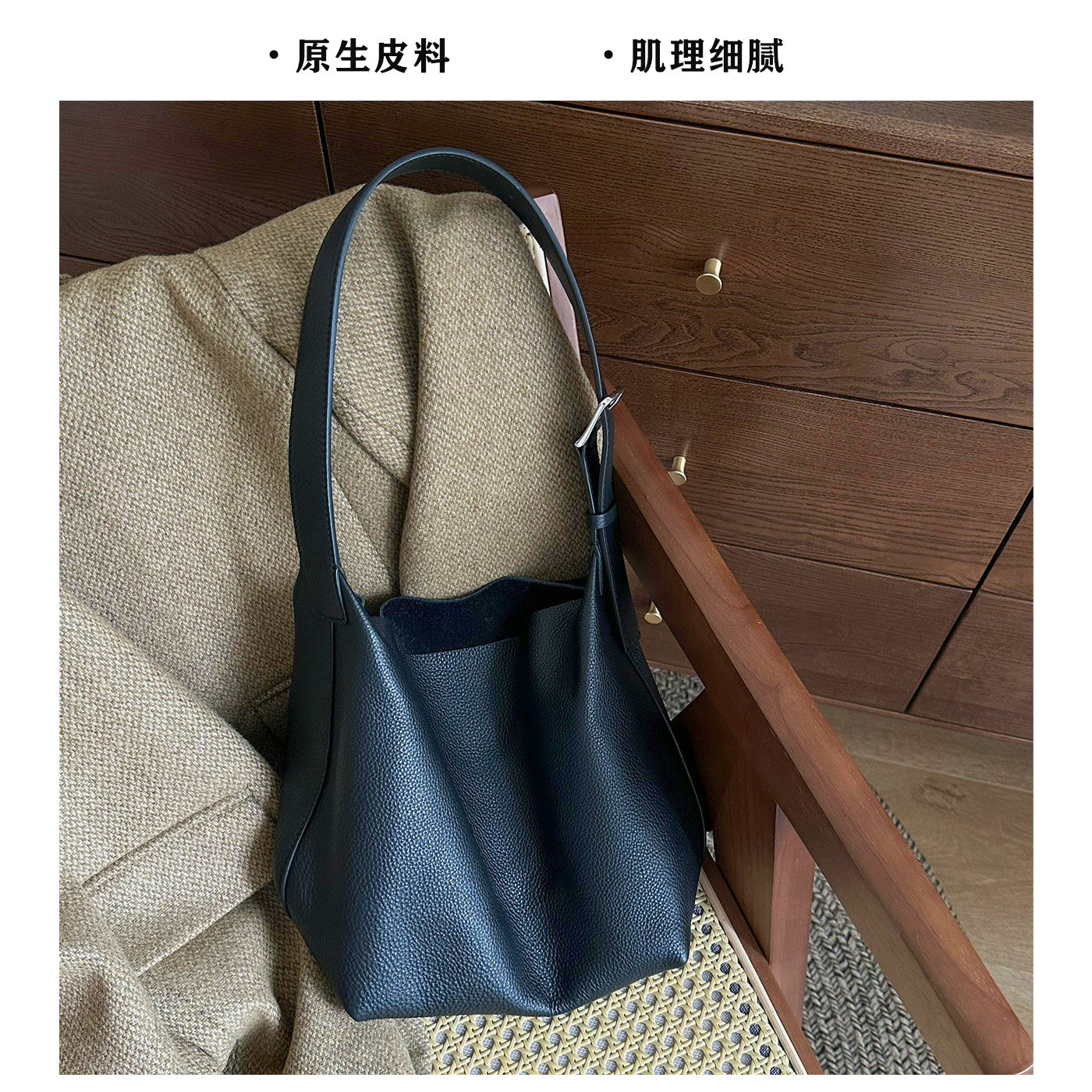 ARJOMORY气质高级感头层牛皮水桶包女2026小众设计通勤单肩斜挎包