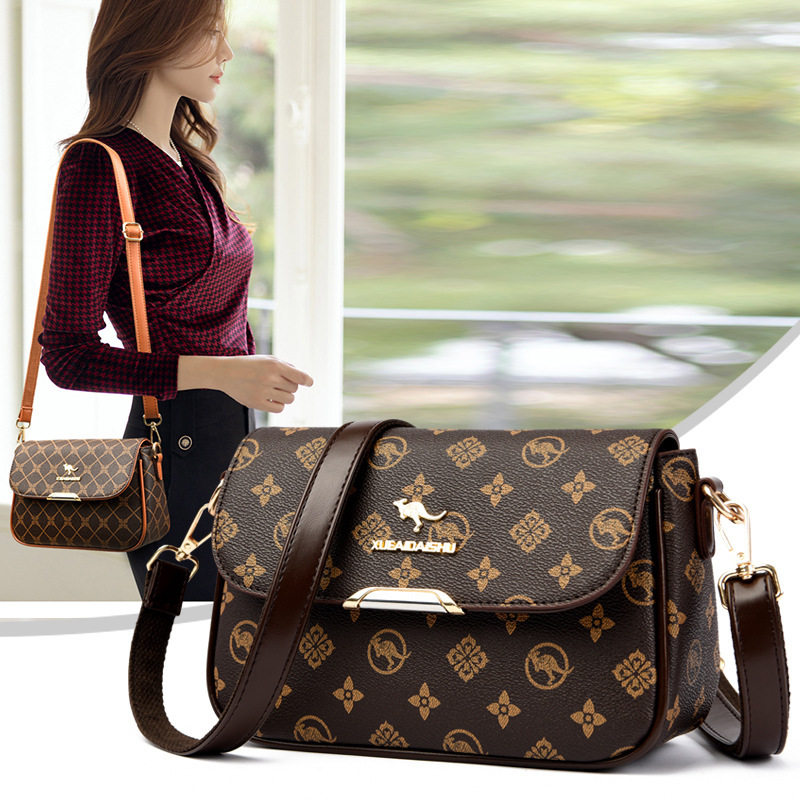 袋鼠品牌正品女士单肩斜挎包2026新款皮包软皮软包便携高级感印花