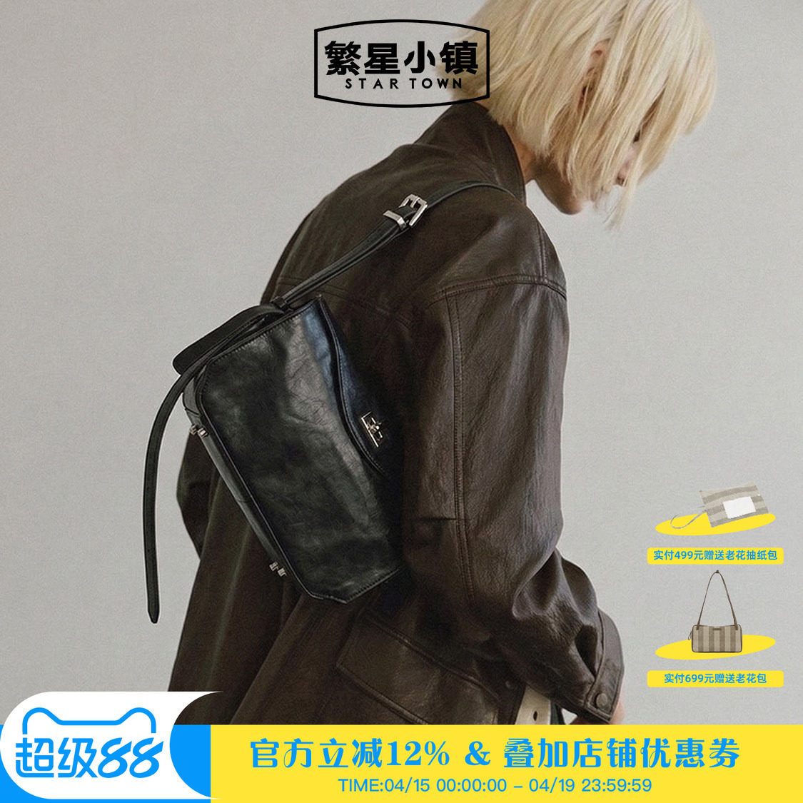 STARTOWN繁星小镇真皮包包复古植鞣牛皮波士顿枕头包单肩斜挎包包