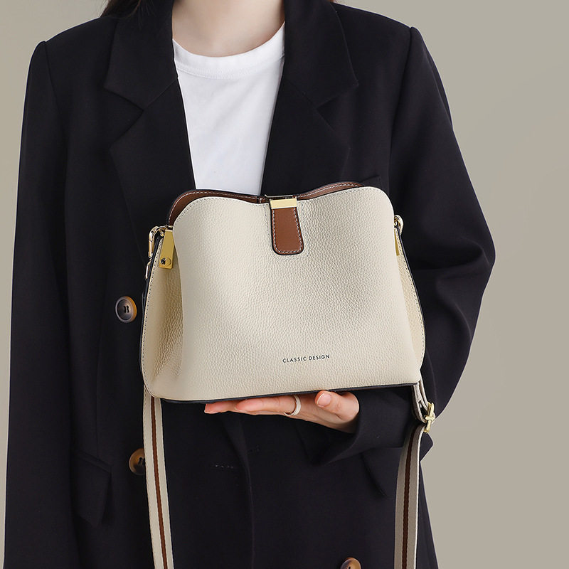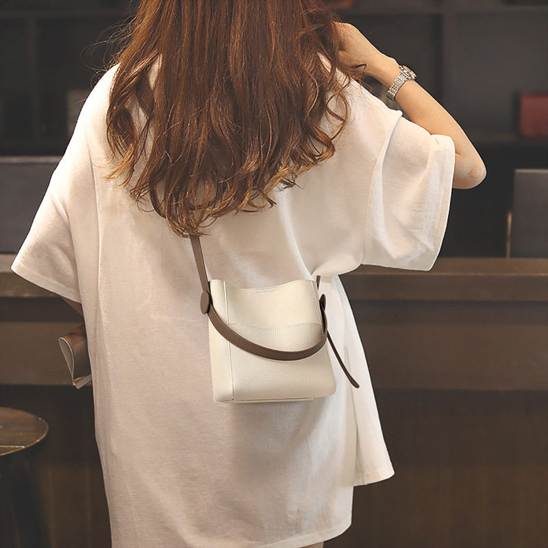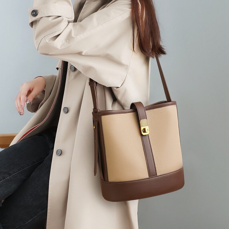 Viney真皮包包女2025新款时尚百搭通勤单肩包大容量小众水桶包