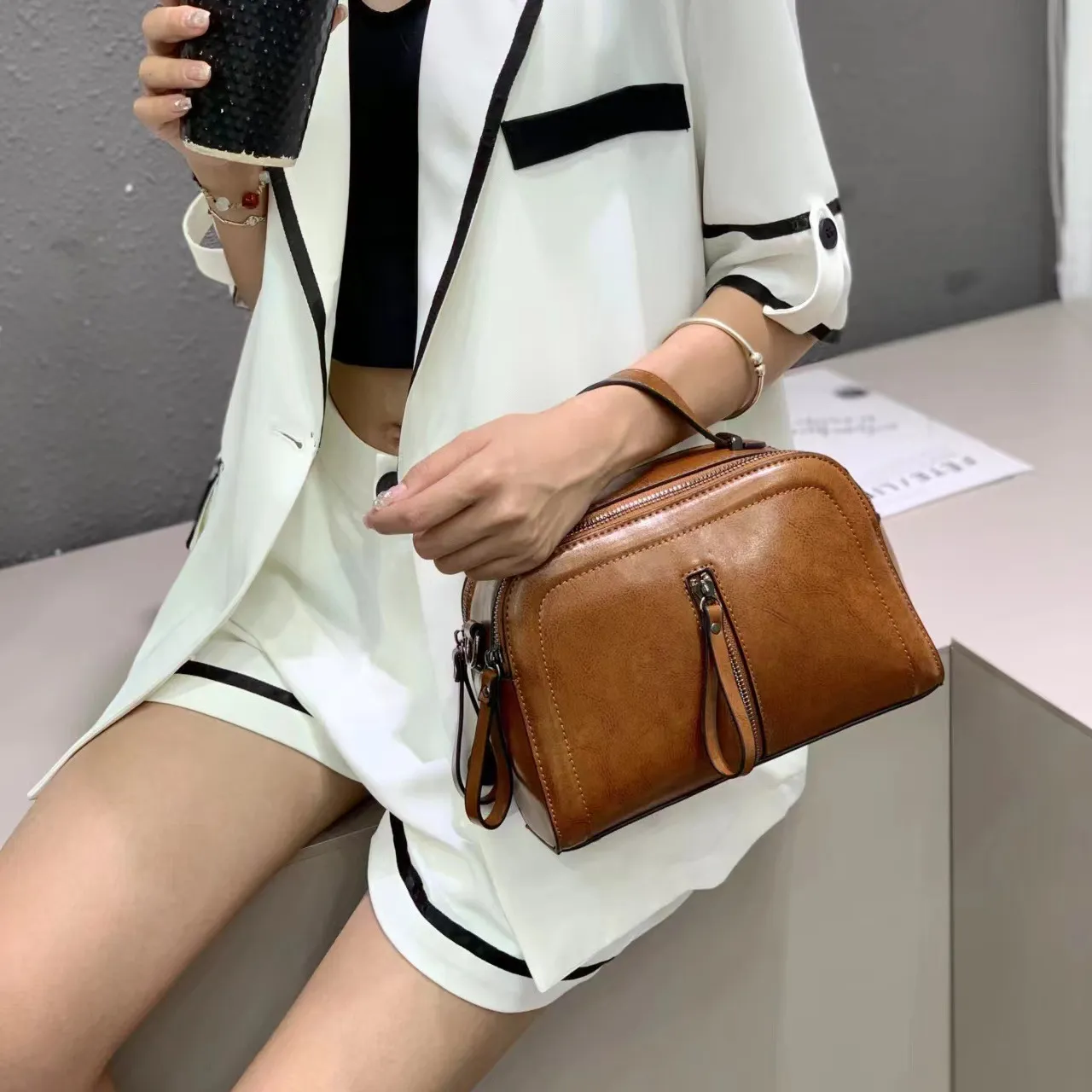 yuqixuan欧美真皮包包女士极简风手提牛皮婚包斜挎包波士顿单肩包
