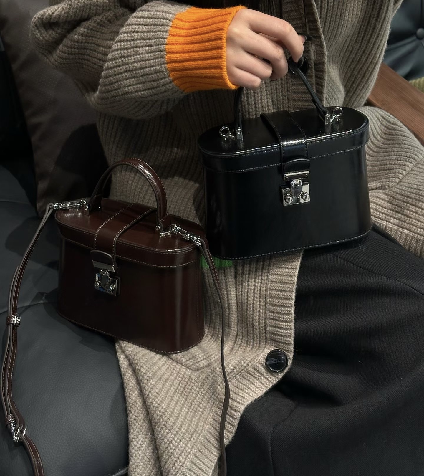 2025新款时尚真皮手提盒子包轻奢小众设计单肩斜挎包高级感牛皮包