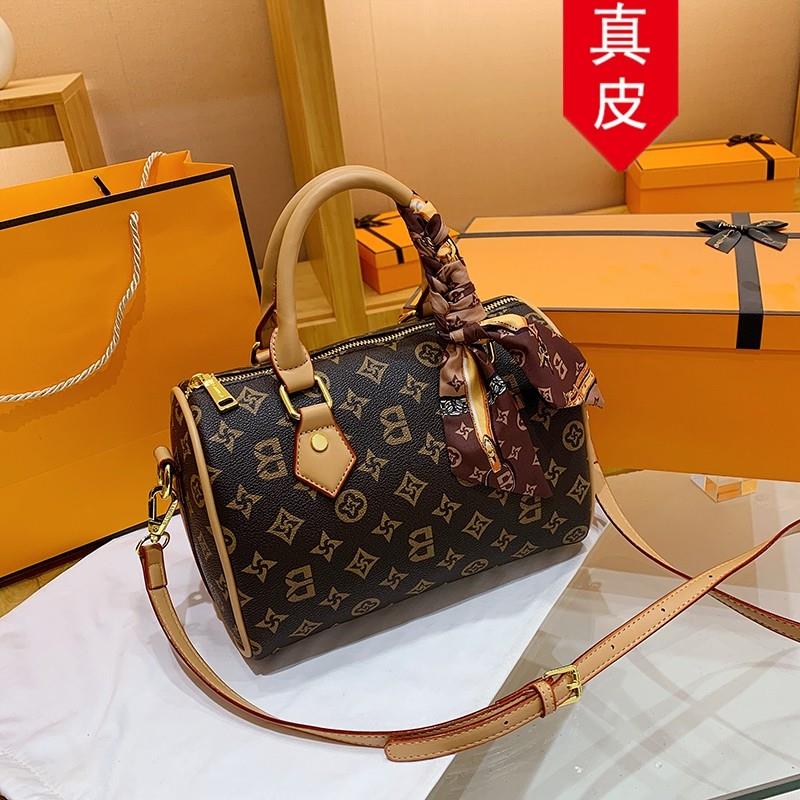 香港真皮包包女2025新款百搭波士顿枕头包斜挎包老花单肩包包