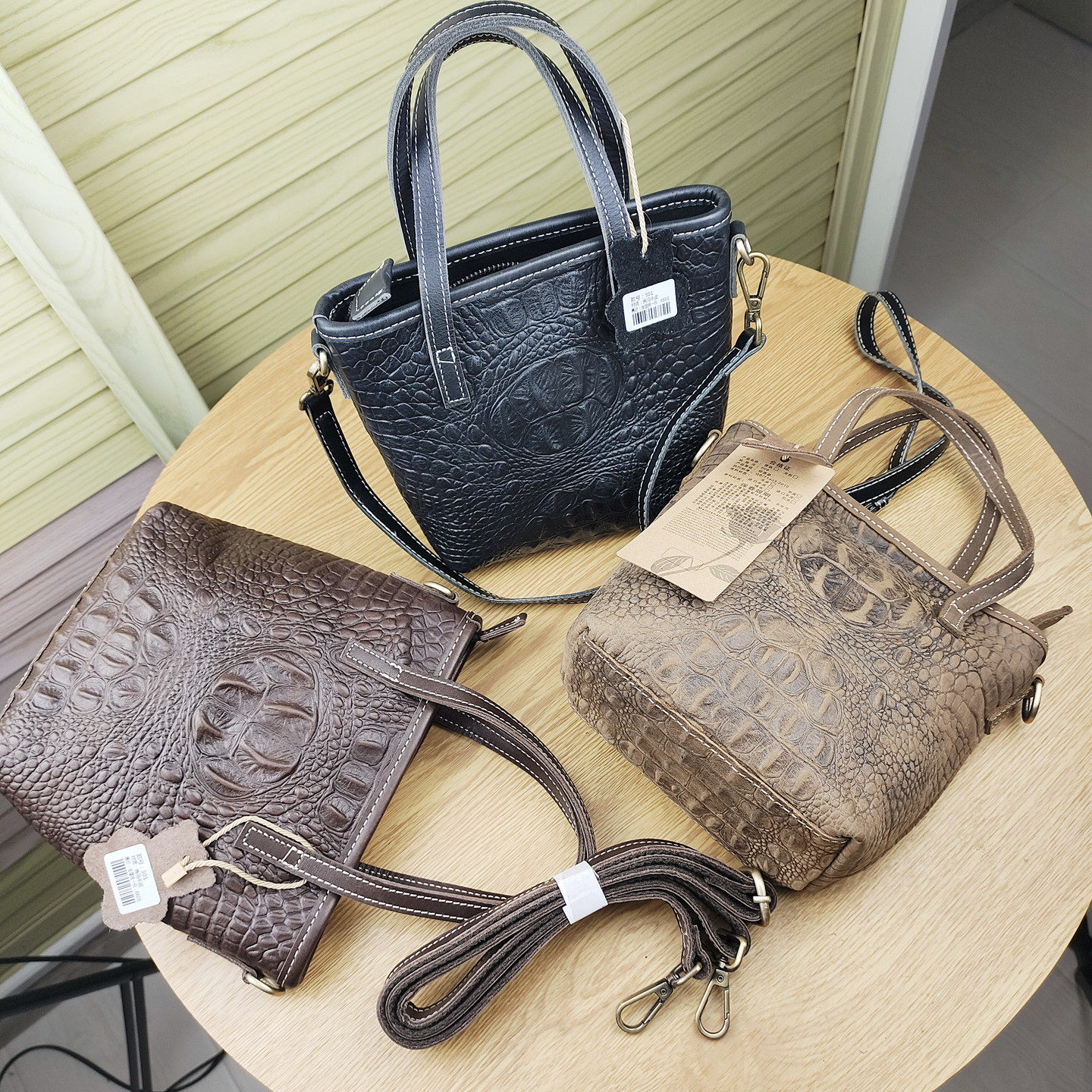 新款疯马皮女包手提包全牛皮包单肩包鳄鱼纹斜挎包简约休闲小包包
