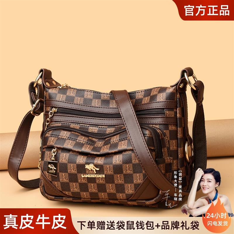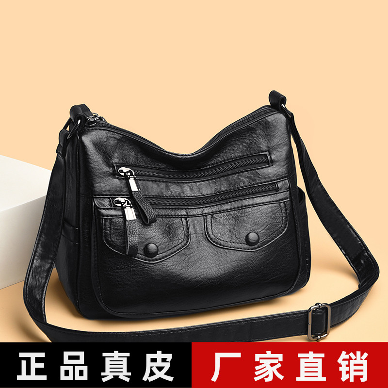 真皮包包女2025新款时尚头层牛皮多层大容量软皮单肩斜挎包妈妈包
