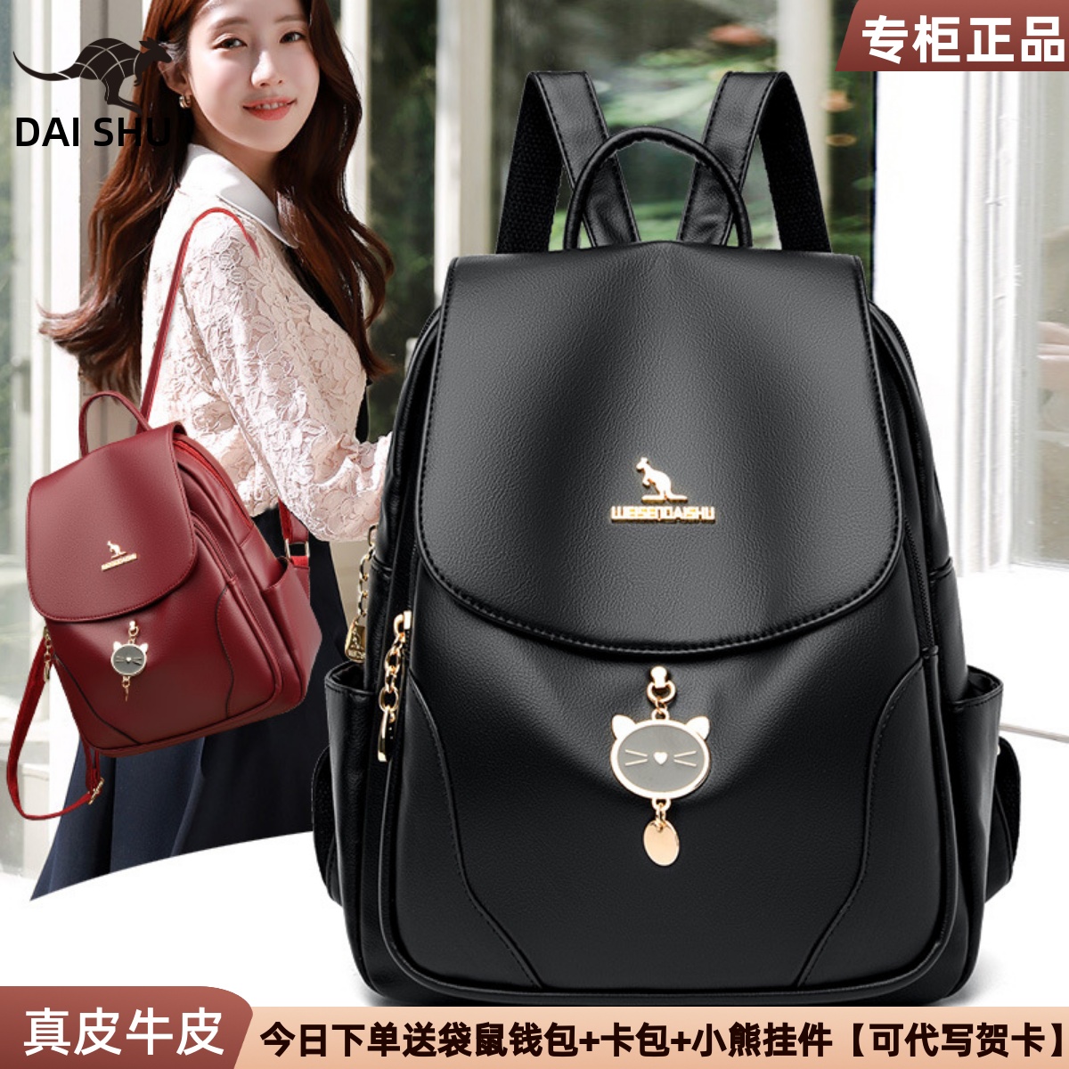 品牌正品真皮包包2025新款时尚头层牛皮双肩包多功能女背包旅行包