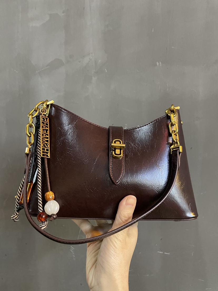 日本品质头层牛皮包包女式高级感复古单肩包2025新款真皮女包包轻