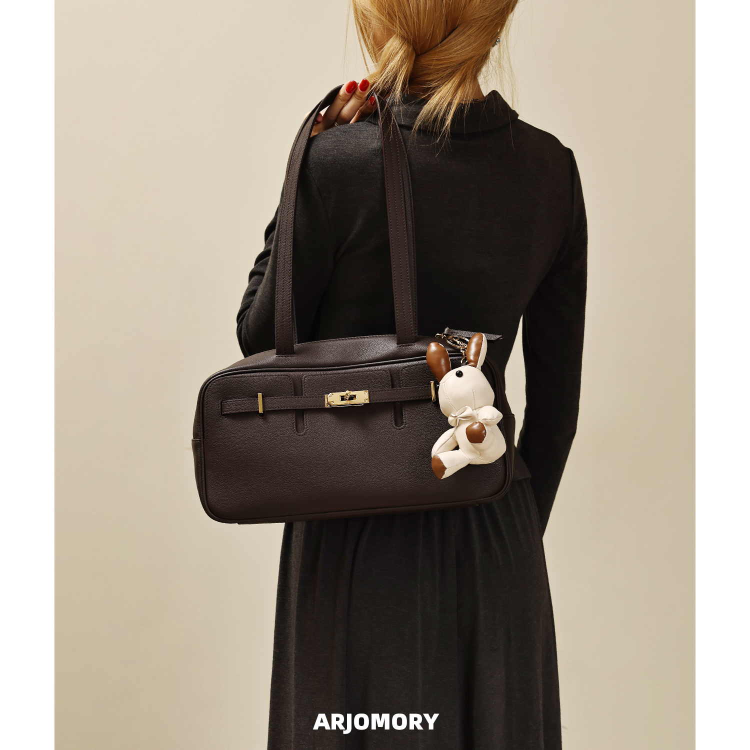 ARJOMORY小众品牌复古真皮保龄球包女2025秋冬新款通勤腋下托特包