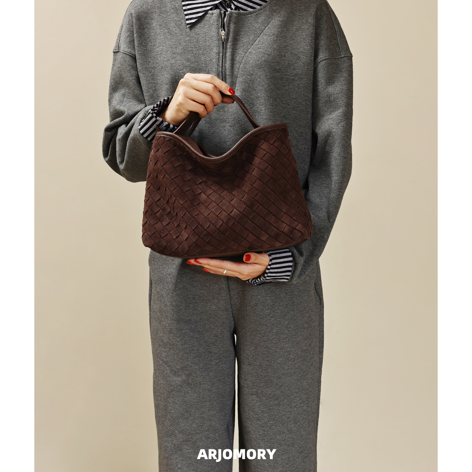 ARJOMORY小众设计复古麂皮绒编织托特包女2025秋冬通勤手提斜挎包