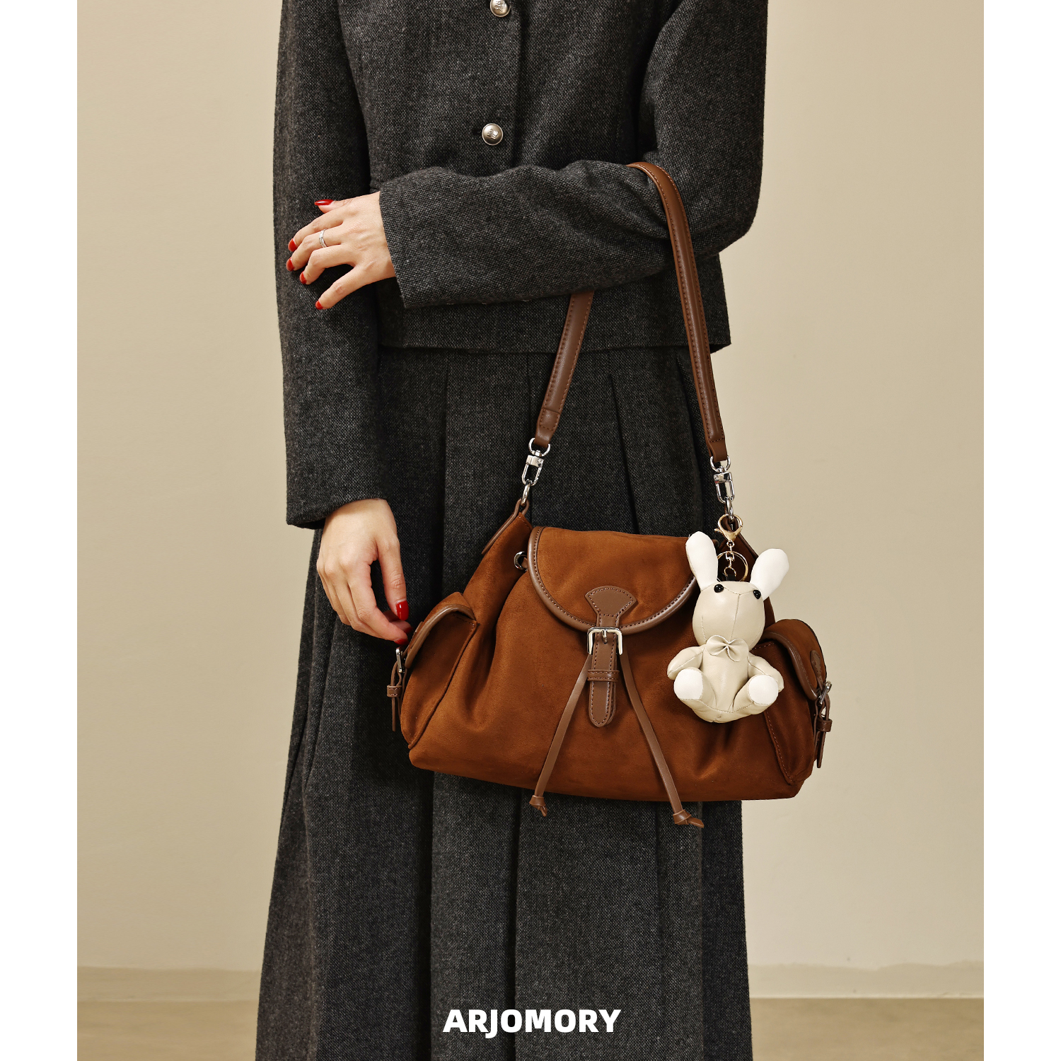 ARJOMORY原创复古麂皮绒美拉德手提包女2025秋冬新款慵懒感斜挎包