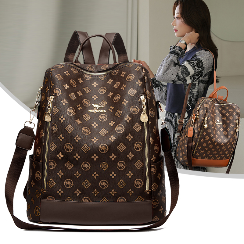 袋鼠双肩包女士皮包2025新款时尚大容量轻便旅游中年软皮妈妈背包
