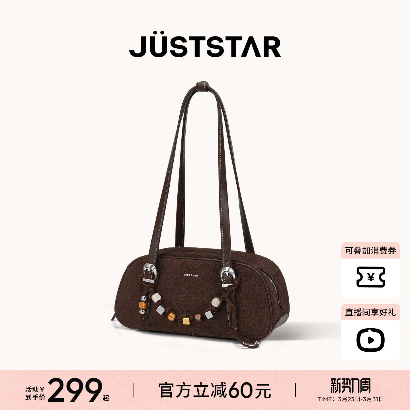 欧时纳青藤法棍包2026新款单肩腋下女包棕色麂皮包波士顿保龄球包