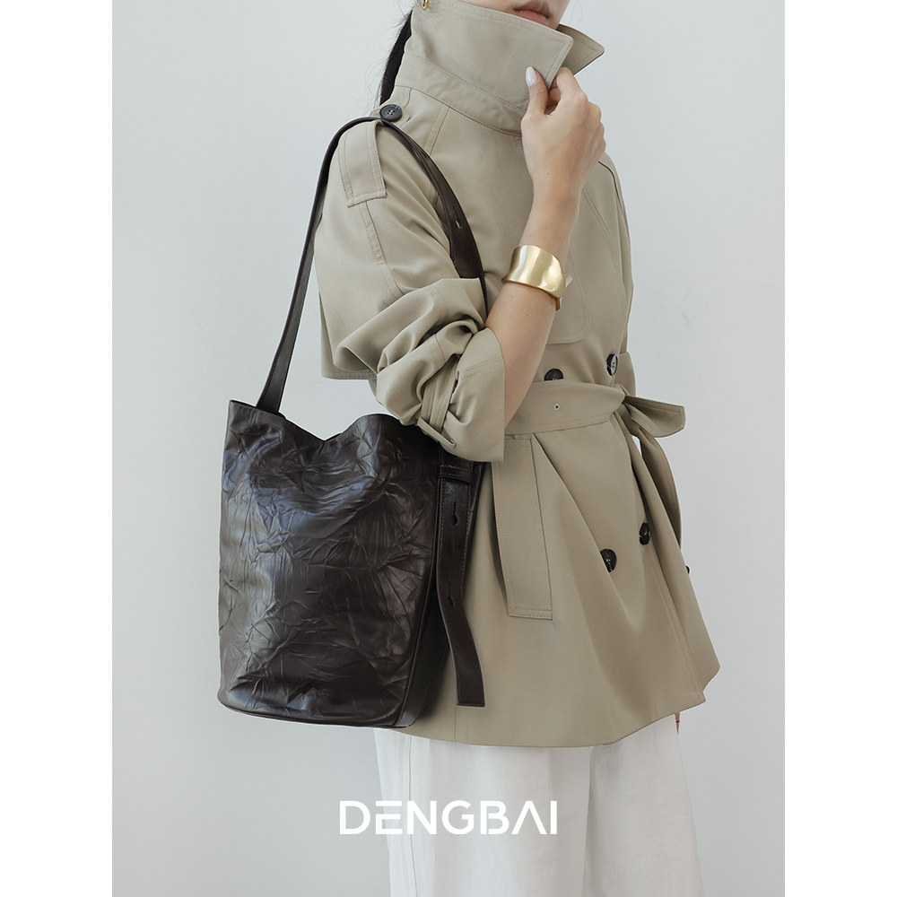 登白DENGBAI 【胡可推荐】 「头层牛皮手抓纹」牛皮水桶包单肩包