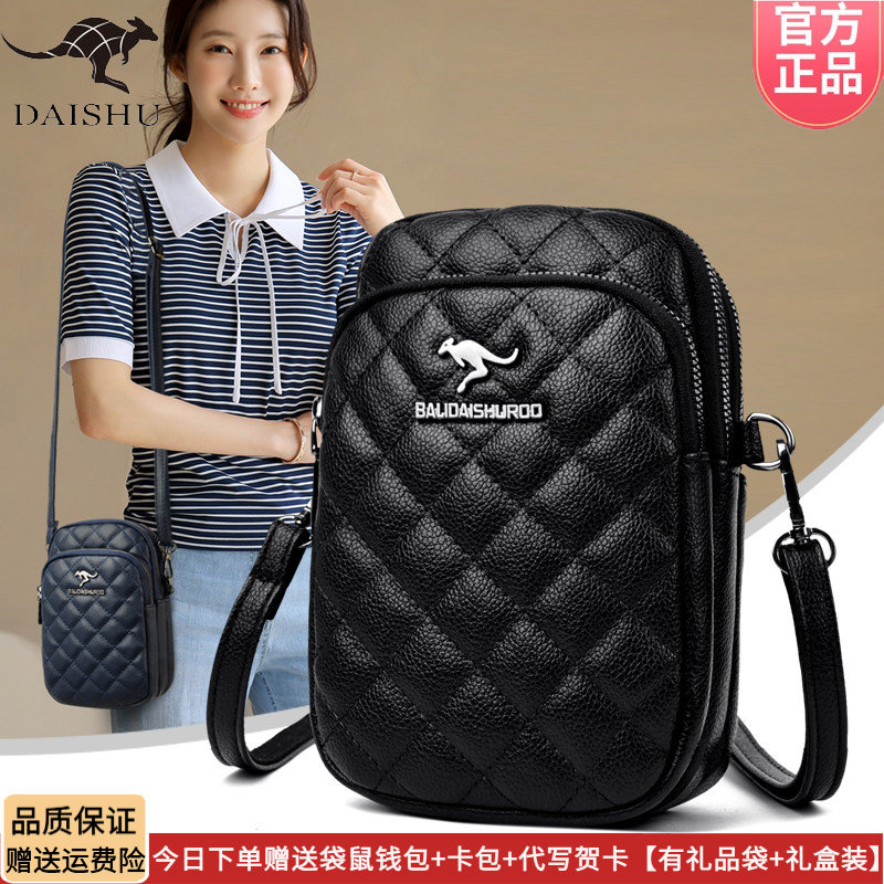 袋鼠皮包手机包放零钱斜挎迷你小包包2026春季新款竖款女包软软皮
