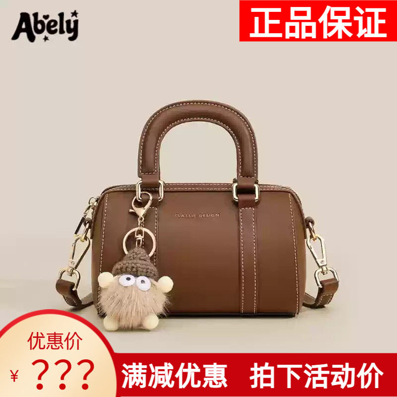 阿贝莉手提手拎包新款真皮包包斜挎枕头包女包圆筒包单肩波士顿包