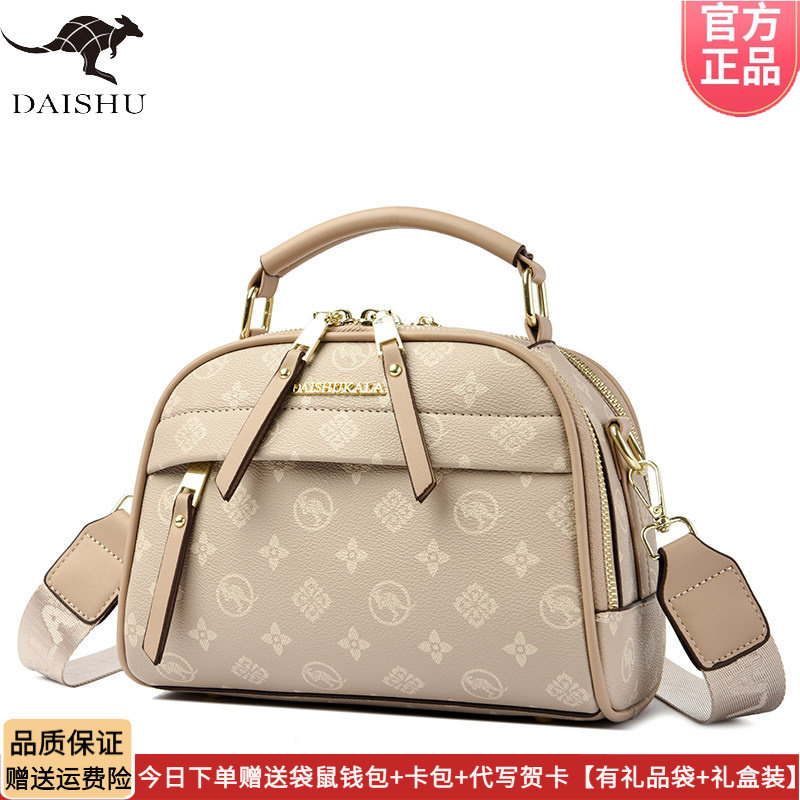 正品袋鼠皮包女包斜挎包2026新款时尚中年妈妈软皮小包单肩手提包