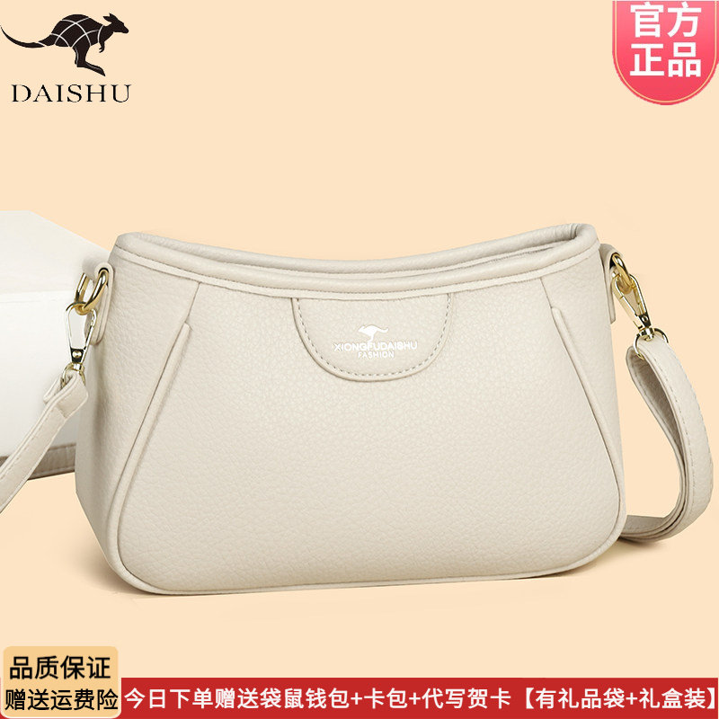 品牌袋鼠中老年单肩包女2026新款百搭软皮送妈妈斜挎小包包皮包包