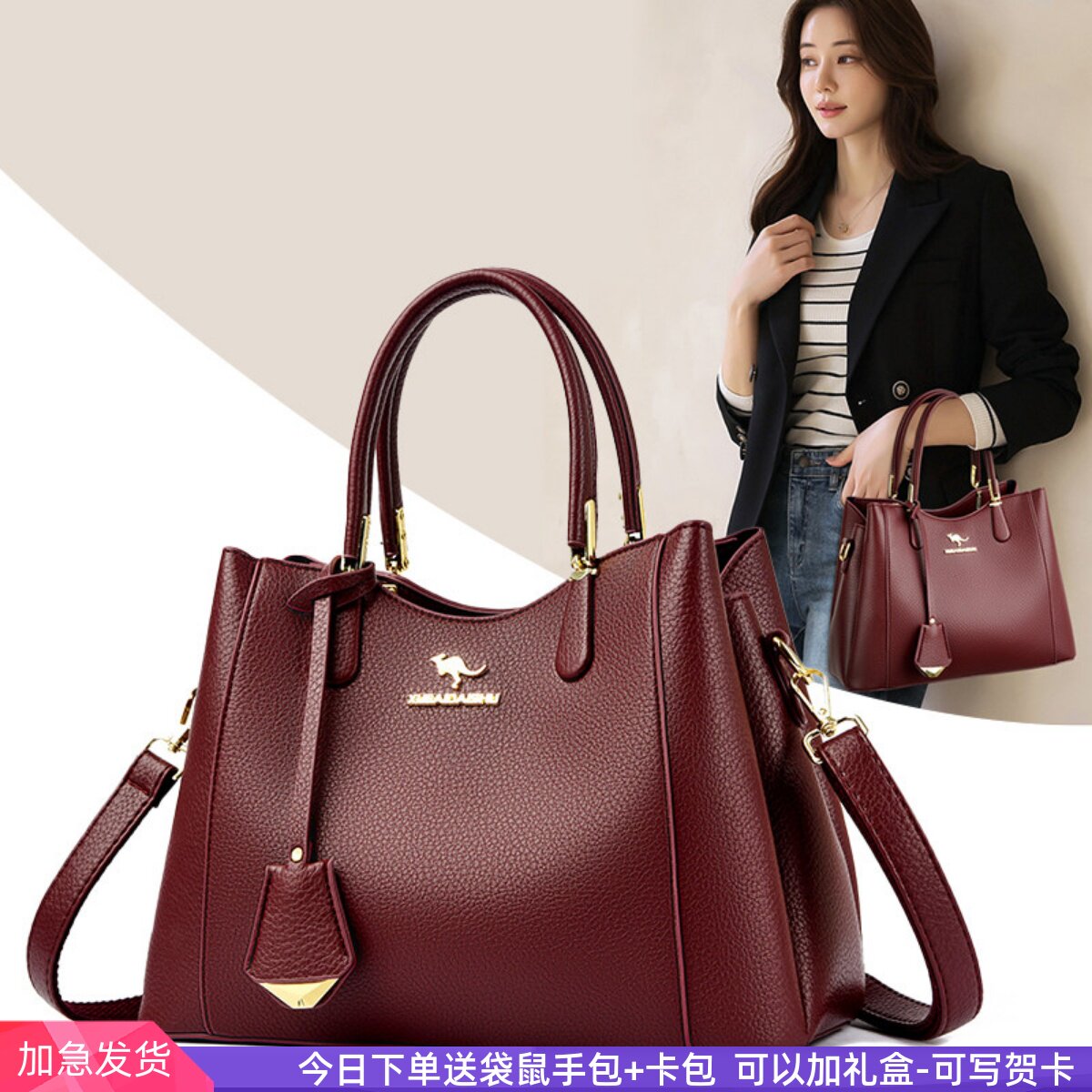 袋鼠正品女士手提包2026新款真皮妈妈包百搭时尚斜挎大容量牛皮包
