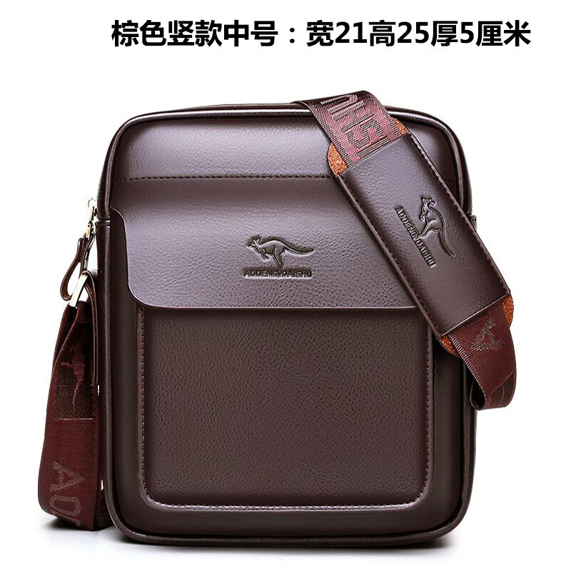 酷奇袋鼠潮流真皮男包商务小背包潮牌休闲多功能牛皮包男士包包单肩斜挎包 047棕色竖1款中号