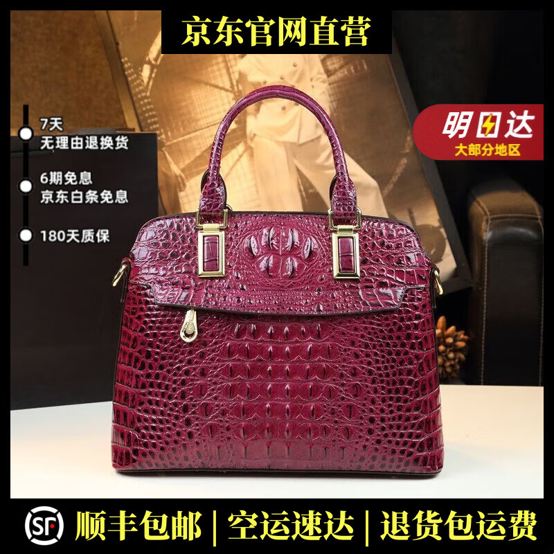 POOLO MEBRDON 保罗蒙巴登轻奢品牌真皮包包女包鳄鱼纹妈妈包单肩包大气中手提包 紫色