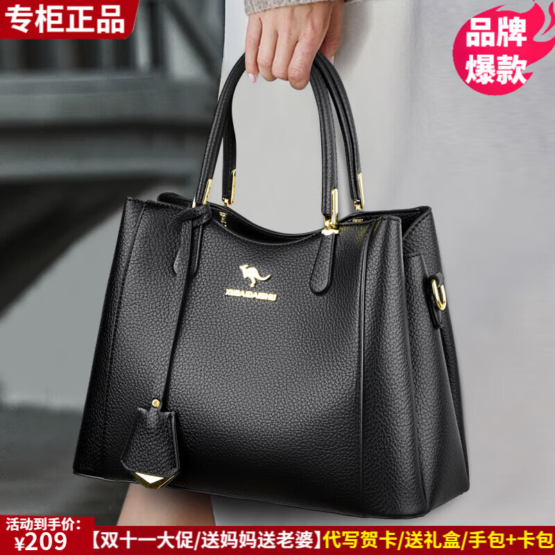 雪爱袋鼠品牌真皮包包女包2025新款秋冬中年女士手提包斜挎包送妈妈送老婆 黑色【礼盒+手包卡包】