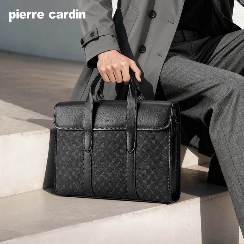 皮尔卡丹(pierre cardin)公文包男士手提电脑包商务轻奢旅行出差高端真皮托特包通勤休闲 黑色 可放16寸电脑