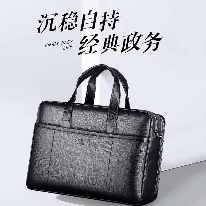 GDGX指纹解锁行政公文包男商务手提包头层牛皮大容量通勤办公包电脑包 黑色 37.5*6*28cm