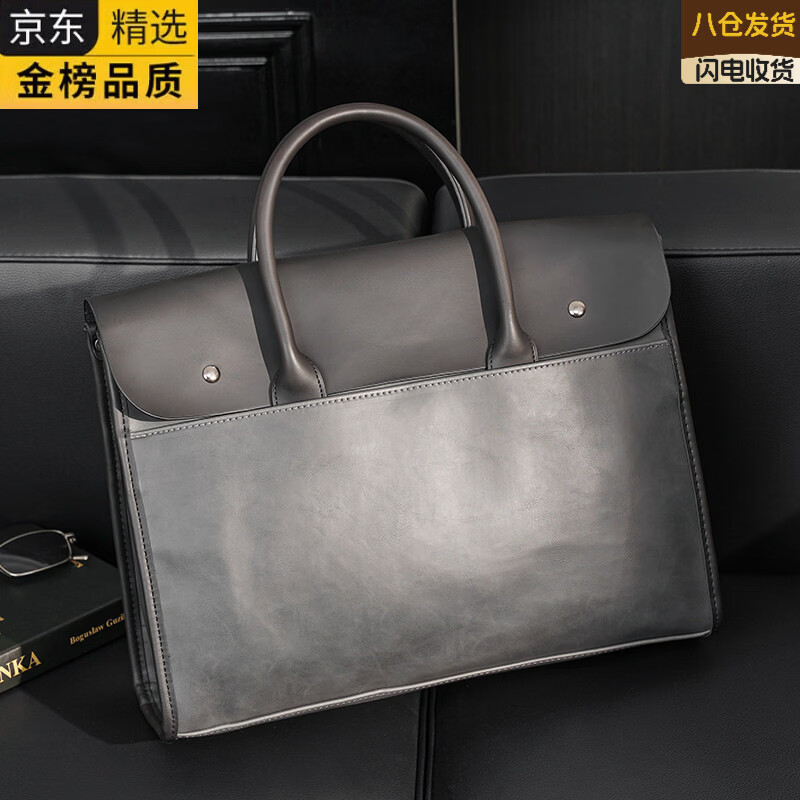GIOIO德国进口品牌复古手提包公文包 男包单肩包斜挎包商务男包高端时 灰色 可开发票