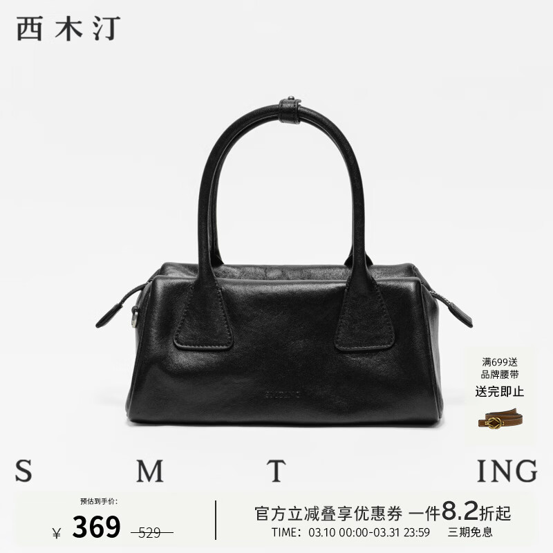 西木汀 头层牛皮包包新款极简手提包女小众斜挎包小个子轻奢单肩包 深邃黑