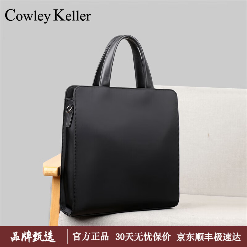 COWLEY KELLER男士手提包商务公文包竖款通勤大容量文件电脑包办公出差律师包男 黑色 33*8.5*34cm 13寸