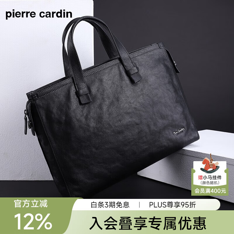 皮尔卡丹公文包男士手提包真皮商务出差大容量电脑包生日礼物实用高端轻奢 【头层牛皮】可放15寸电脑 15英寸