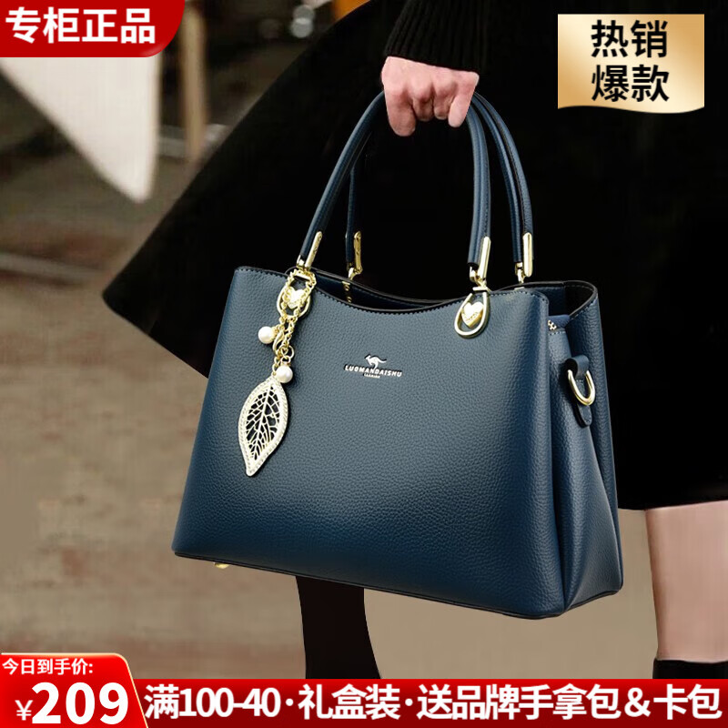 玫瑰袋鼠轻奢专柜真皮送妈妈礼物牛皮包包女士包2025七夕中年斜挎包大容量 深蓝色