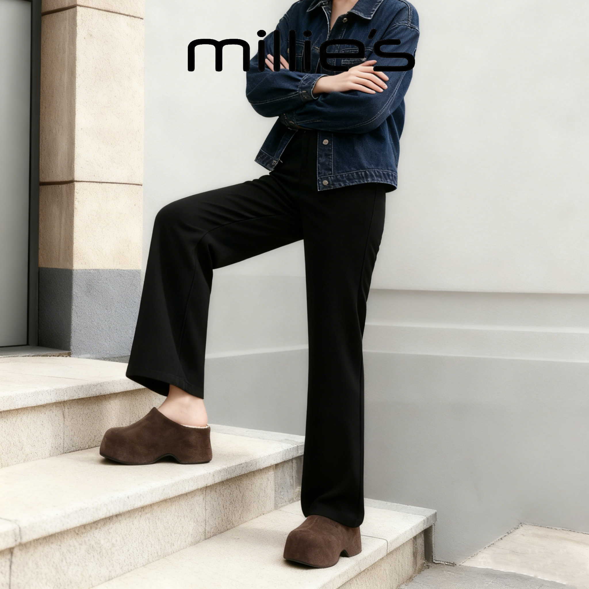 MILLIE'S/妙丽加绒保暖真皮包头拖鞋半包一脚蹬鞋厚底穆勒鞋外穿