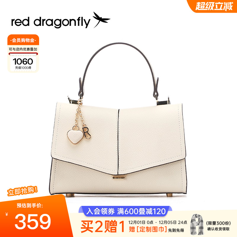红蜻蜓真皮手提包女式头层牛皮包包小方包妈妈泡泡通勤单肩斜挎包