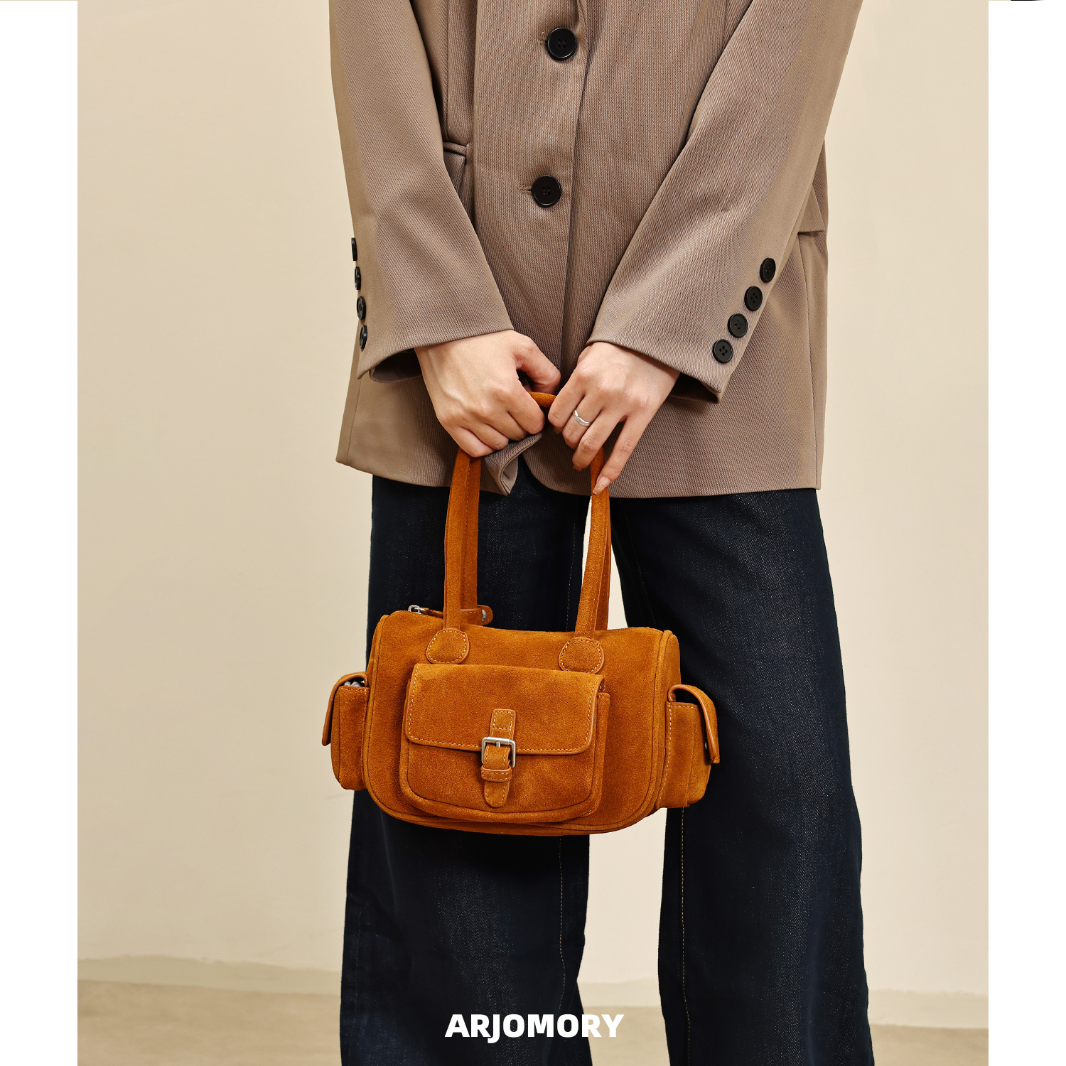 ARJOMORY原创品牌麂皮绒保龄球包2025早秋新款HOBO女包单肩手提包