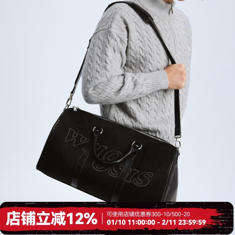 WHOOSIS(不知其名)logo刺绣大容量旅行健身皮包通勤校园外出潮