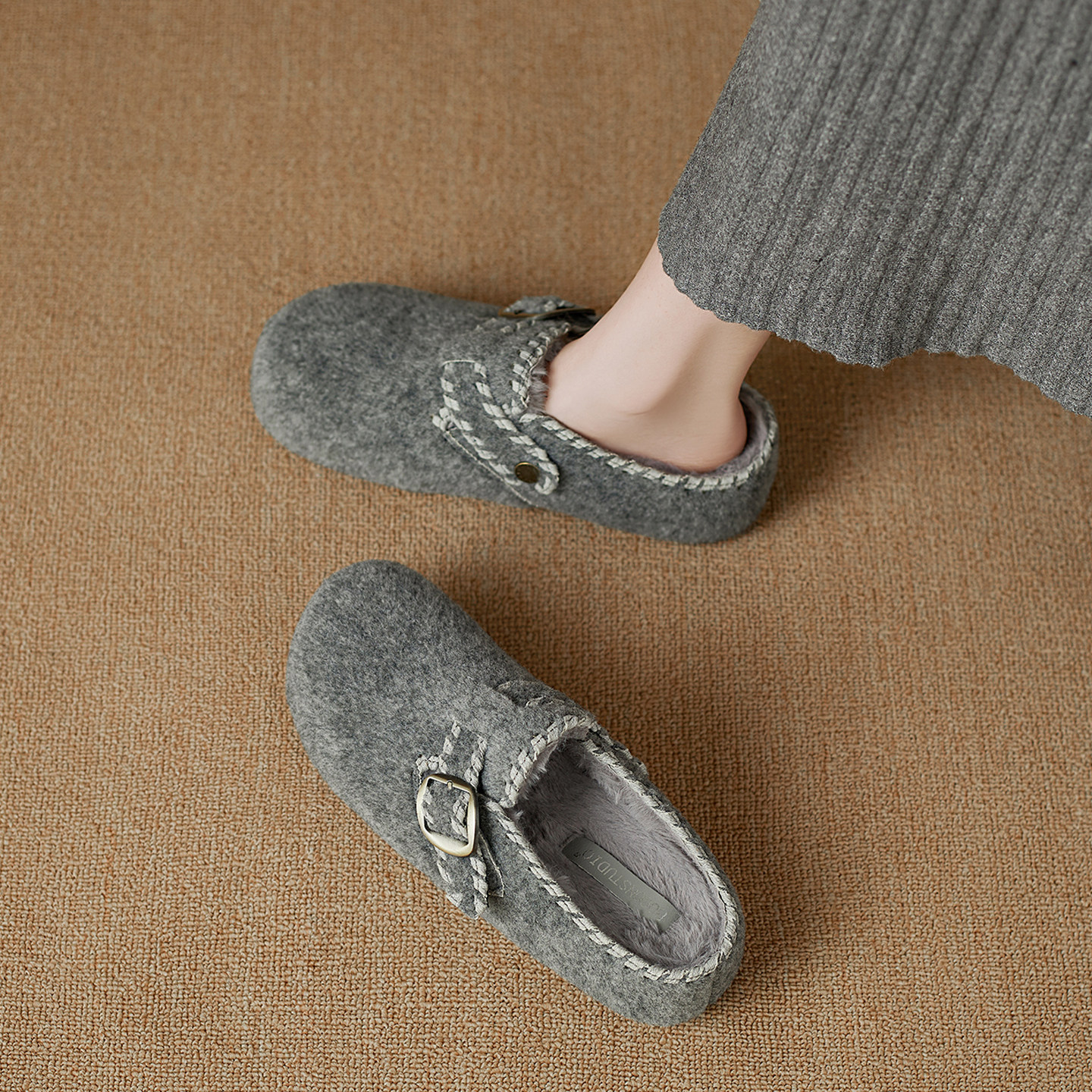 真皮包头拖5cm勃肯半拖鞋女2025秋冬新款厚底毛毛鞋保暖包头拖鞋