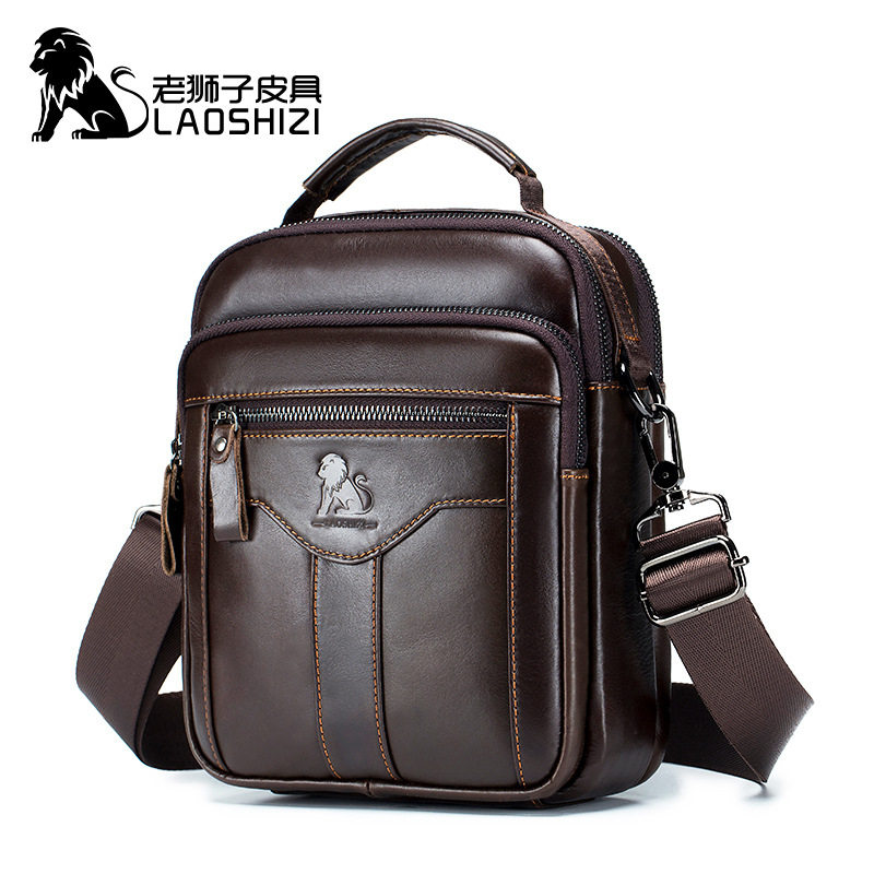 老狮子真皮男包商务男士斜挎包时尚潮流复古男皮包头层牛皮单肩包