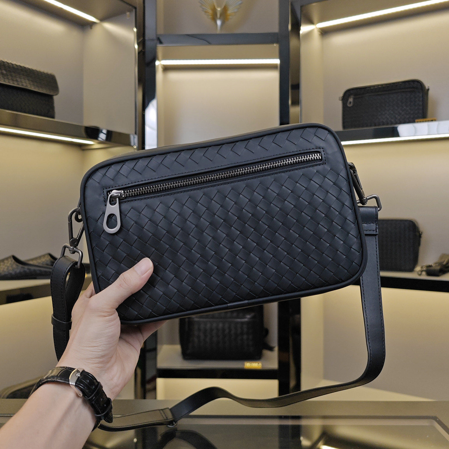 新款潮牌单肩斜挎包男真皮编织小挎包女两用手包休闲横款男士皮包