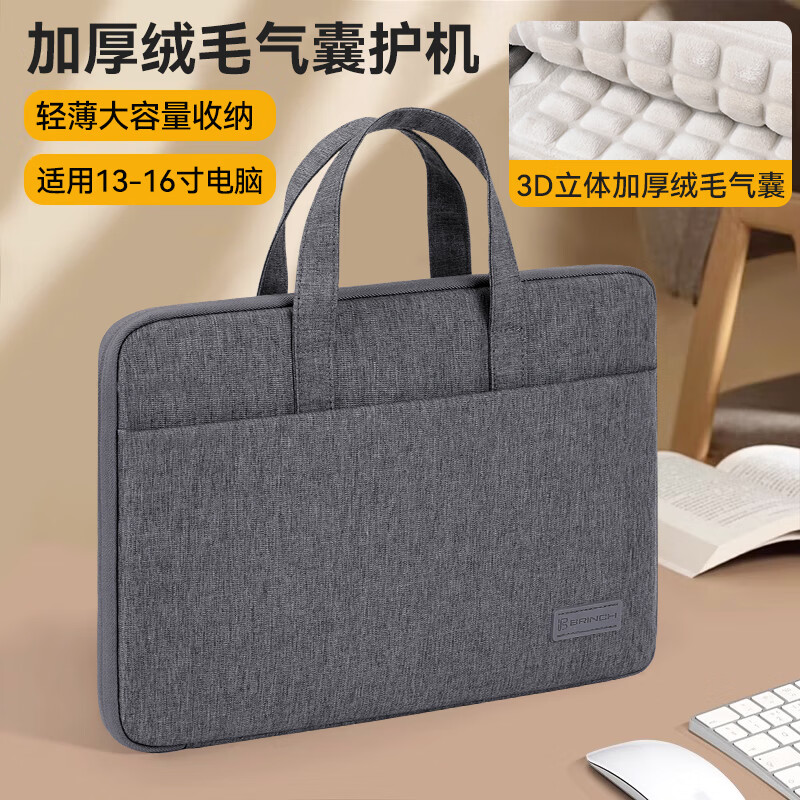 inateck笔记本电脑包单肩手提公文包防泼防震联想华硕戴尔拯救者15吋灰