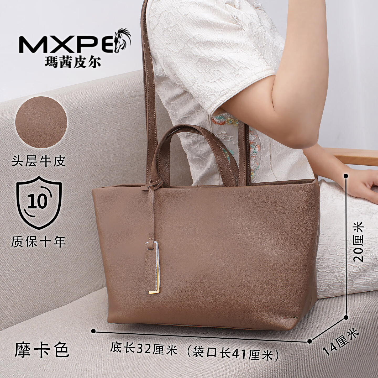 玛茜皮尔 MXPE真皮包包女2025新款情人节托特包时尚高级感通勤头层牛皮单肩包女 摩卡色 无规格