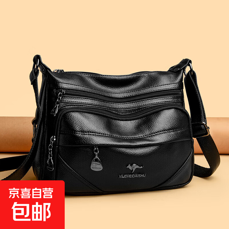 品牌2025新款中年妈妈婆婆包真皮质感斜挎包包软皮包大容量单肩包 品牌正品黑色