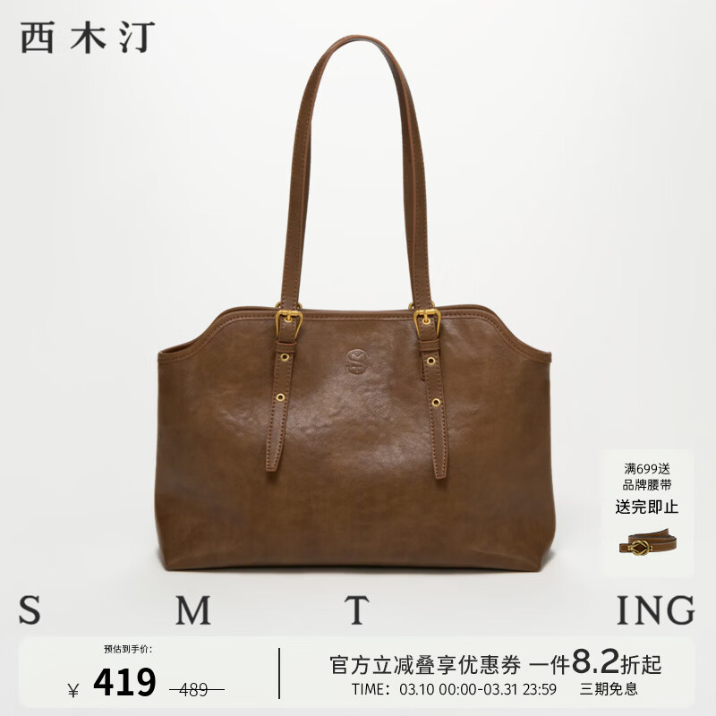 西木汀 晚秋 牛皮包包女新款冬季大容量单肩包百搭高级感 生日礼物 咖啡色 无规格