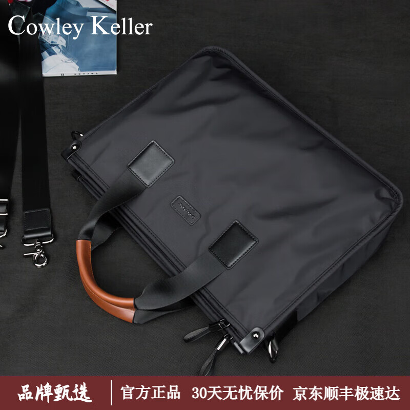 COWLEY KELLER公文包男士手提包大容量商务电脑包通勤防泼水尼龙布斜挎包律师包 CK黑色 38*11*28.5cm 14英寸